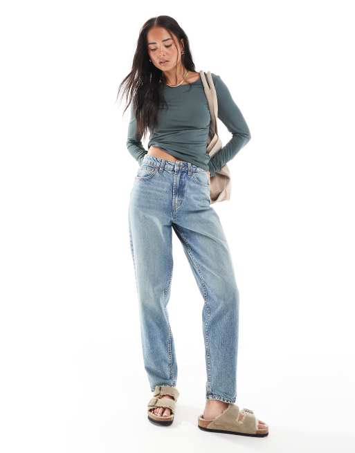 Miss Selfridge – Jasnoniebieskie jeansy mom fit z podwyższonym stanem