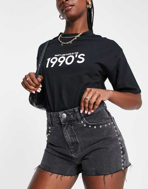 Miss Selfridge – Jeansowe szorty w kolorze spranej czerni z ćwiekami