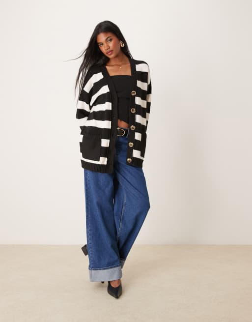 Miss Selfridge – Kardigan średniej długości z ozdobnymi szwami i wzorem w paski