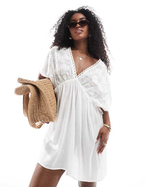 Miss Selfridge – Kremowa koronkowa sukienka plażowa mini
