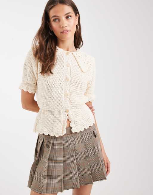 Miss Selfridge – Kremowy dzianinowy top z baskinką