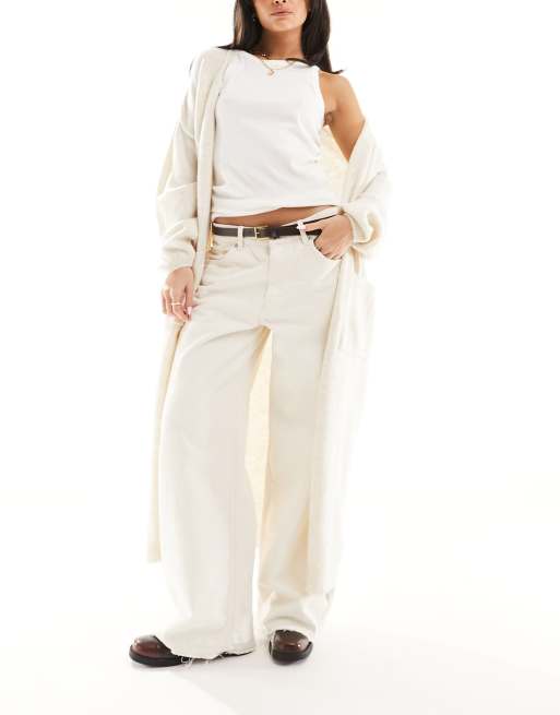 Miss Selfridge – Kremowy kardigan maxi z balonowymi rękawami i kieszeniami