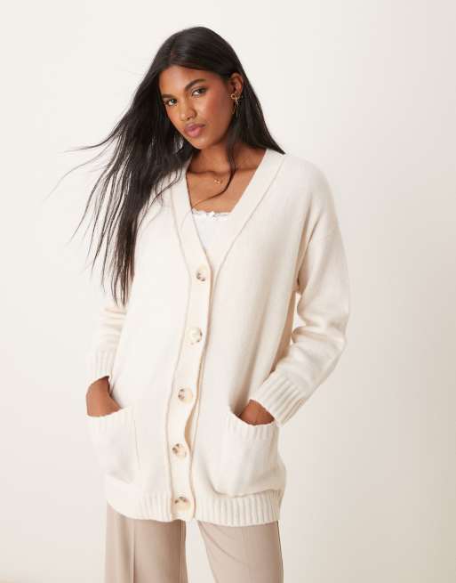 Miss Selfridge – Kremowy kardigan średniej długości z ozdobnymi szwami