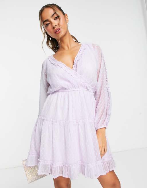 Miss Selfridge – Liliowa sukienka mini z marszczeniem w talii