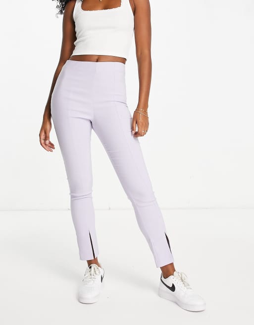 Miss Selfridge – Liliowe legginsy z bengaliny z rozcięciem z boku