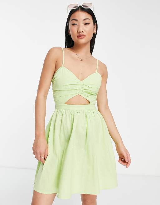 Miss Selfridge – Limonkowa sukienka mini na ramiączkach z wycięciem