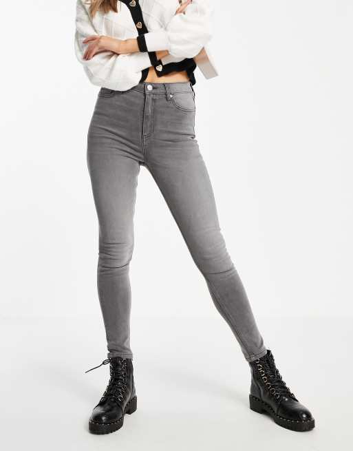 Miss Selfridge – Lizzie – Szare jeansy o obcisłym kroju z podwyższonym stanem