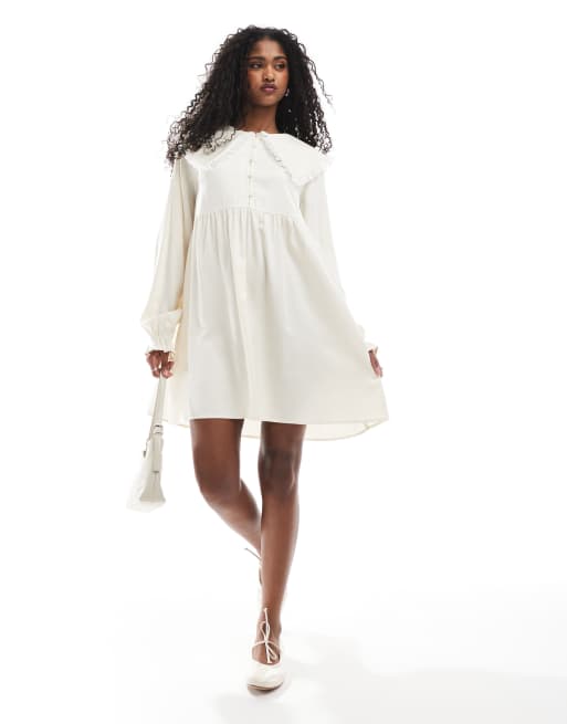 Miss Selfridge – Luźna sukienka z kołnierzem z koronkową falbanką