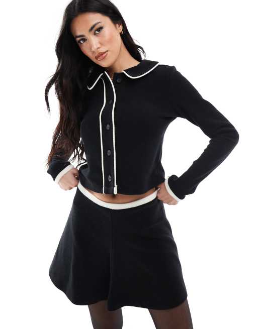Miss Selfridge – Miękki prążkowany kardigan z kontrastowym wykończeniem