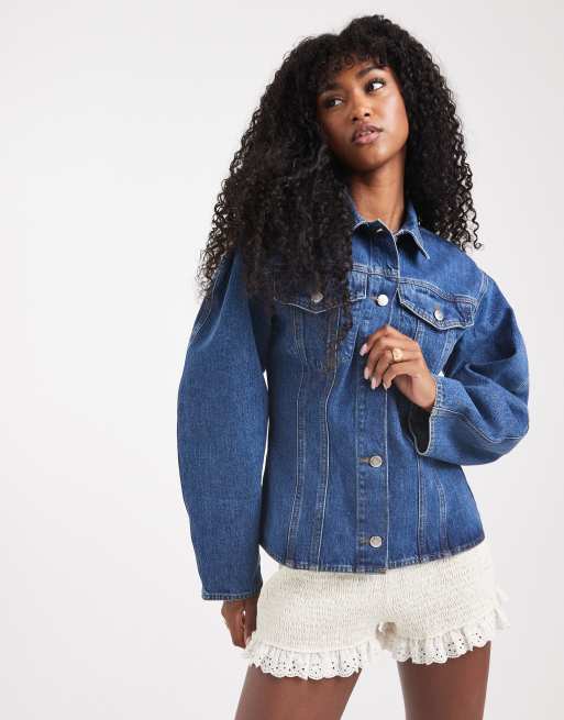 Miss Selfridge – Niebieska jeansowa koszula o dopasowanym kroju gorsetowym