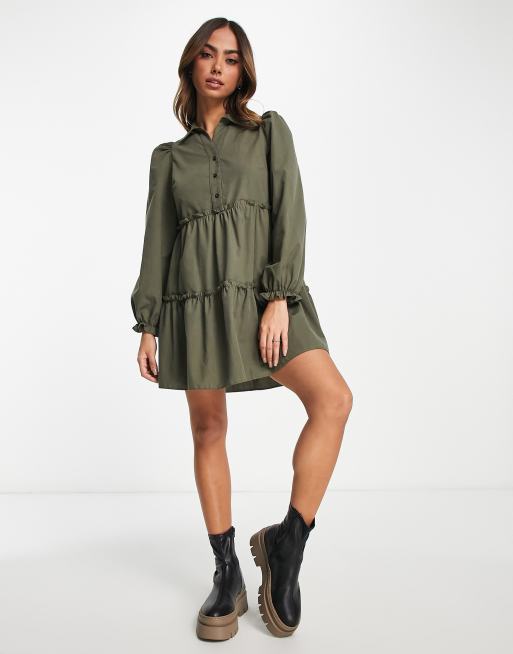 Miss Selfridge – Oliwkowa luźna sukienka koszulowa z popeliny