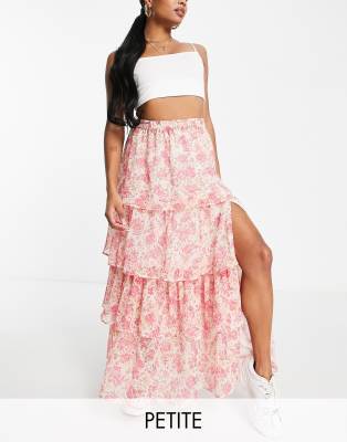 Miss Selfridge Petite – Kaskadowa szyfonowa spódnica maxi z falbanką, w kwiatowy wzór