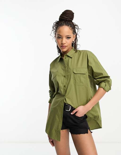 Miss Selfridge – Popelinowa koszula oversize w stylu utility w kolorze khaki