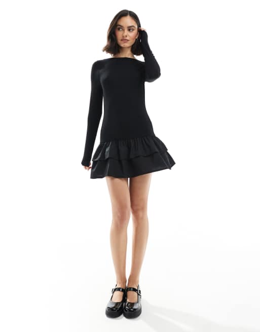 Miss Selfridge – Popelinowa sukienka mini z zabudowanym dekoltem i falbanką na dole