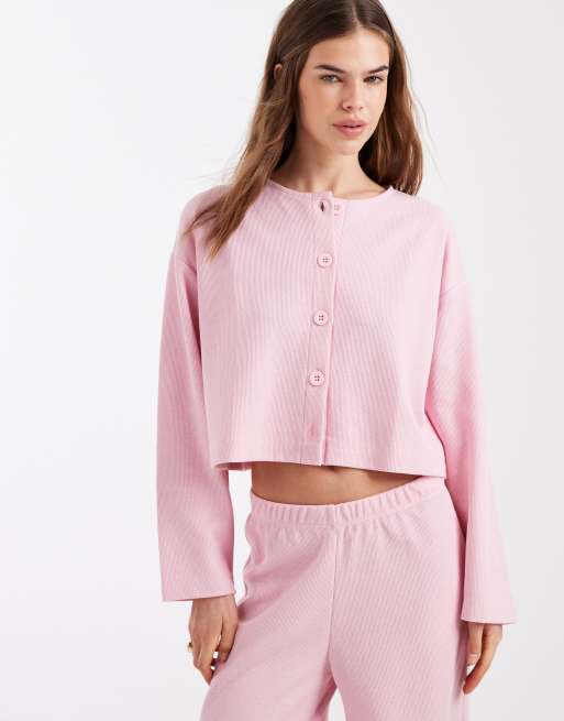 Miss Selfridge – Różowy prążkowany kardigan w paski, część zestawu