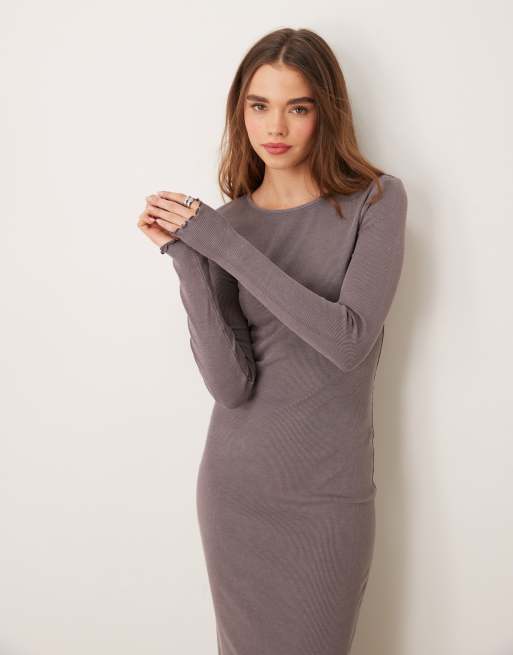 Miss Selfridge – Sprana ciemnobrązowa sukienka midi z długimi rękawami