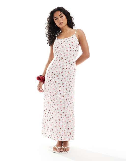 Miss Selfridge – Sukienka maxi na ramiączkach z dekoltem w kształcie litery U we wzór w serca
