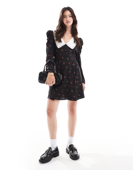 Miss Selfridge – Sukienka mini w groszki i wisienki z kołnierzykiem