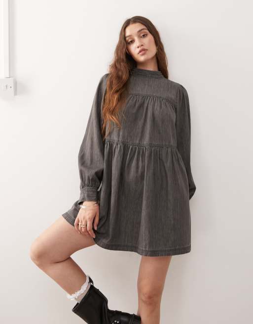Miss Selfridge – Sukienka z długim rękawem i golfem w spranym czarnym kolorze