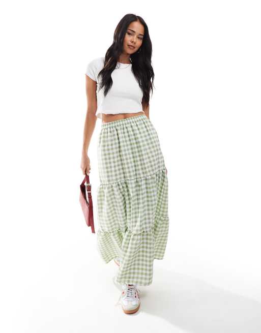 Miss Selfridge – Szałwiowa warstwowa spódnica maxi w kratkę vichy