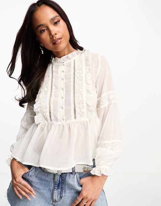 Miss Selfridge – Szyfonowa bluzka w kolorze kości słoniowej z haftowanym wzorem w stylu boho