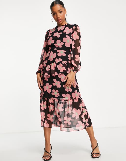 Miss Selfridge – Szyfonowa sukienka midi oversize we wzór w kwiaty