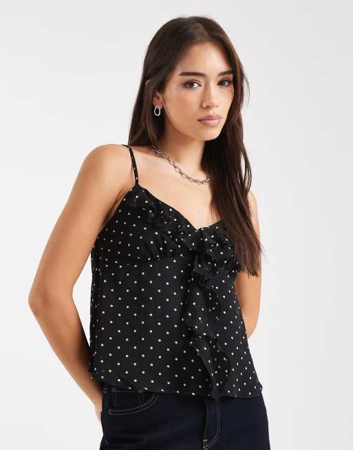 Miss Selfridge – Szyfonowy top na ramiączkach w groszki z falbanką