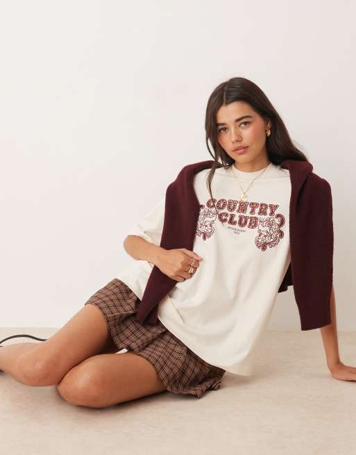 Miss Selfridge – T-shirt oversize z nadrukiem