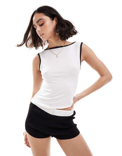 Miss Selfridge – Top bez rękawów z prostym dekoltem w kolorze kości słoniowej