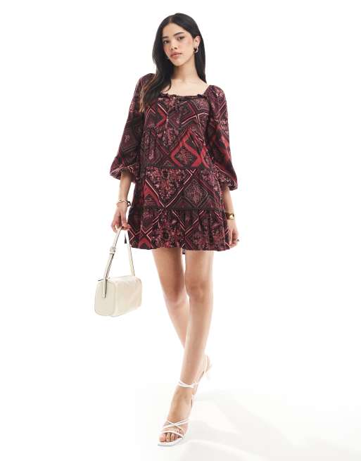 Miss Selfridge – Warstwowa sukienka mini w kwiatowy wzór paisley