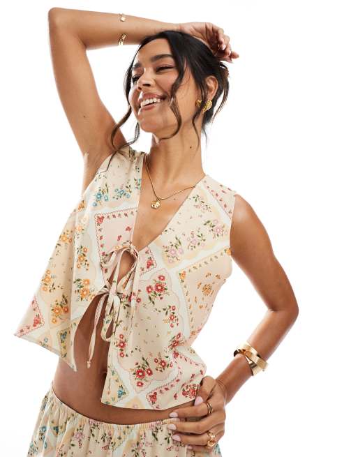 Miss Selfridge – Wiązana z przodu kamizelka w apaszkowy wzór