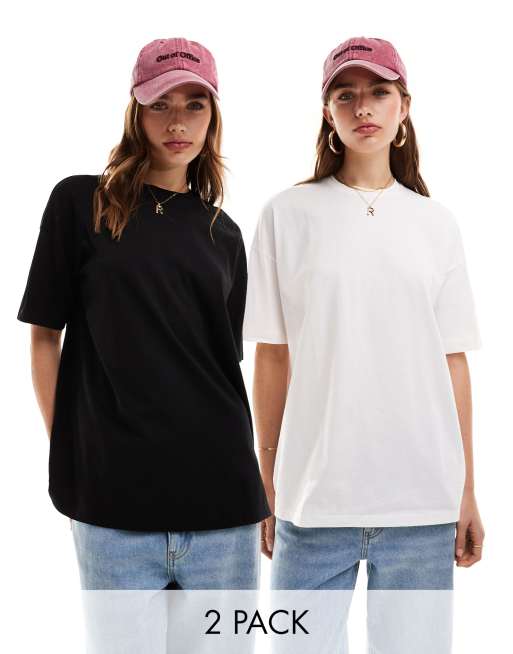Miss Selfridge – Zestaw 2 T-shirtów oversize w kolorze czarnym i białym