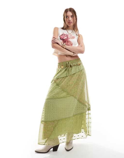 Miss Selfridge – Zielona sukienka maxi z łączonych materiałów z patchworkowym wzorem
