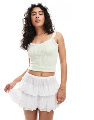 Miss Selfridge – Zielony prążkowany top na ramiączkach z haftem angielskim