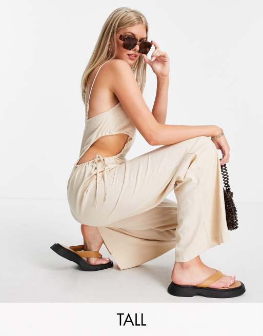 Missguided Tall – Beżowy kombinezon z wycięciami
