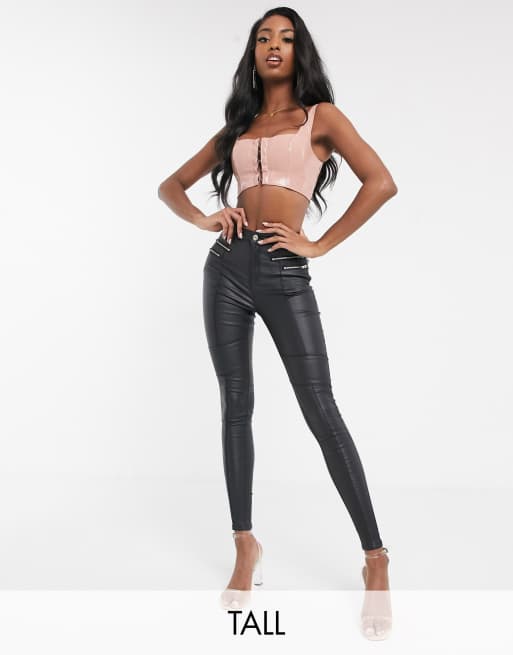 Missguided Tall – Czarne woskowane jeansy o obcisłym kroju z ozdobnymi zamkami
