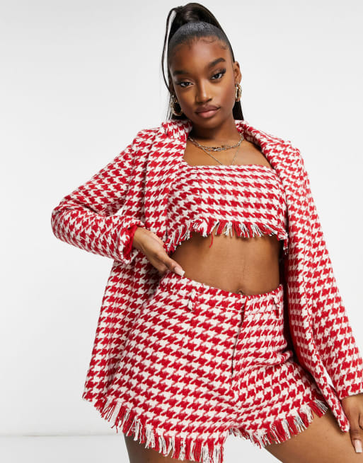 Missguided – Czerwony zestaw z tkaniny bouclé