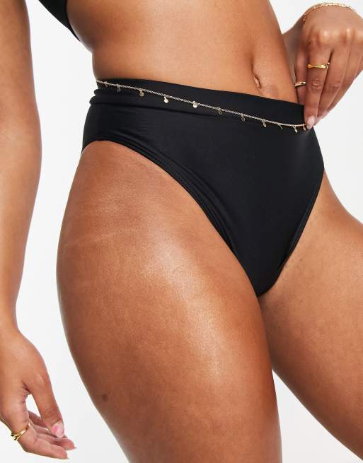 Missguided – Mix & Match – Czarny dół od bikini z wysokim stanem