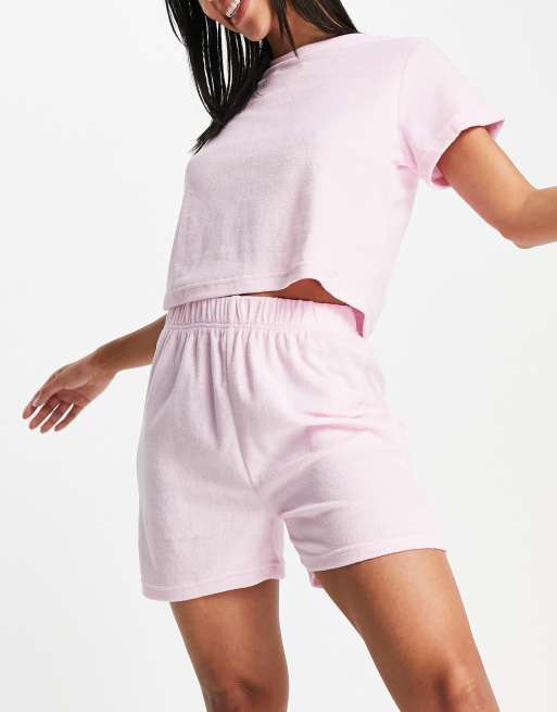 Missguided – Różowy zestaw z frotte: T-shirt i szorty
