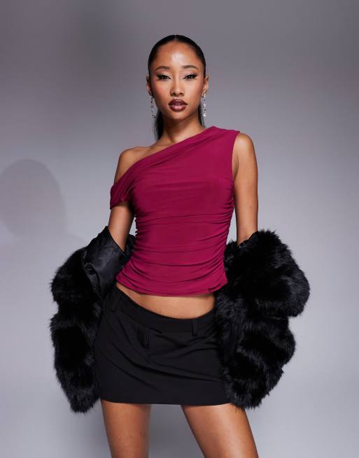 Missy Empire Exclusive – Przylegający dwuwarstwowy malinowy top z odsłoniętym ramieniem