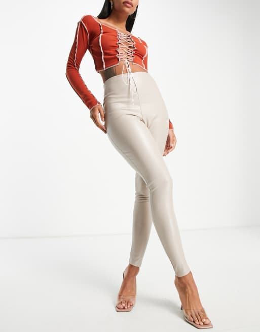 Missy Empire – Legginsy z podwyższonym stanem z imitacji skóry w kolorze ecru
