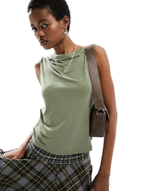 Monki – Bardzo miękki top bez rękawów z dekoltem w łódkę w kolorze khaki