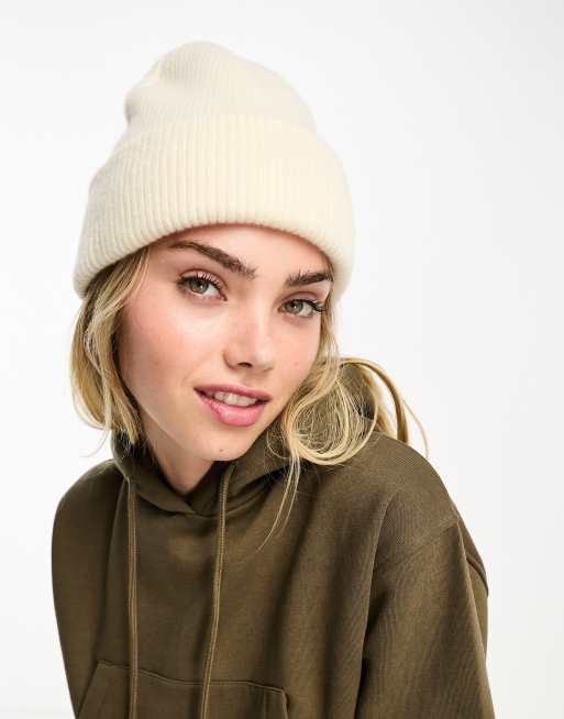 Monki – Beżowa dzianinowa czapka beanie