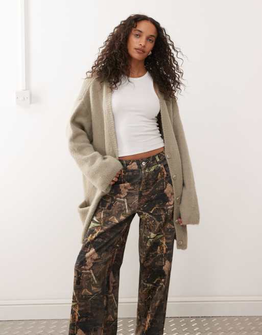 Monki – Beżowy kardigan oversize z puszystej dzianiny