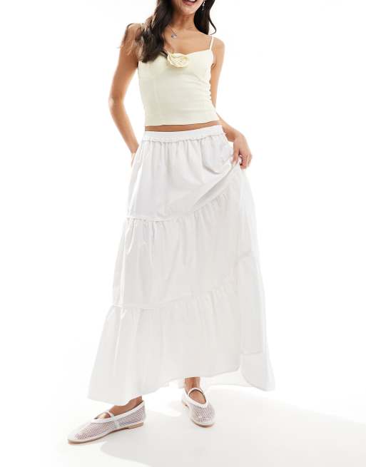 Monki – Biała warstwowa spódnica z bawełnianej popeliny z gumką w pasie