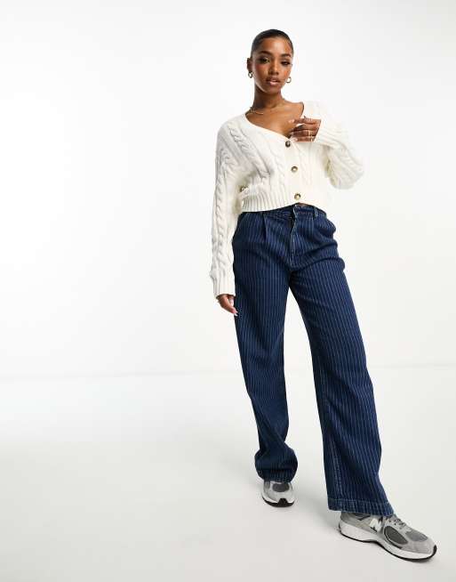 Monki – Biały kardigan o warkoczowym splocie