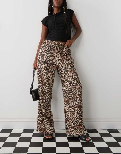 Monki – Cętkowane satynowe spodnie z szerokimi nogawkami