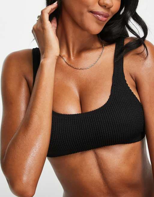 Monki – Czarna góra od bikini z dekoltem w kształcie litery U z mieszanki poliestru – BLACK