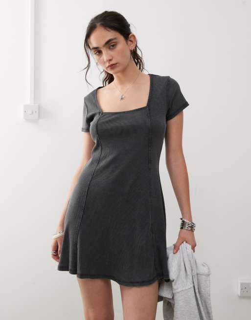 Monki – Czarna prążkowana sukienka mini, tylko w ASOS