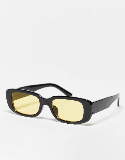 Monki – Czarne prostokątne okulary przeciwsłoneczne z kolorowymi szkłami